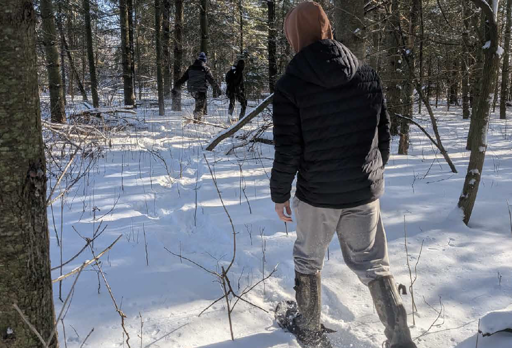 Les élèves participent à une journée en raquettes où ils mettent en pratique les apprentissages du module : sécurité, premiers soins, respect de l’environnement et reconnaissance des territoires ancestraux. Une chasse au trésor hivernale et un retour réflexif complètent cette expérience authentique et engageante en pleine nature.